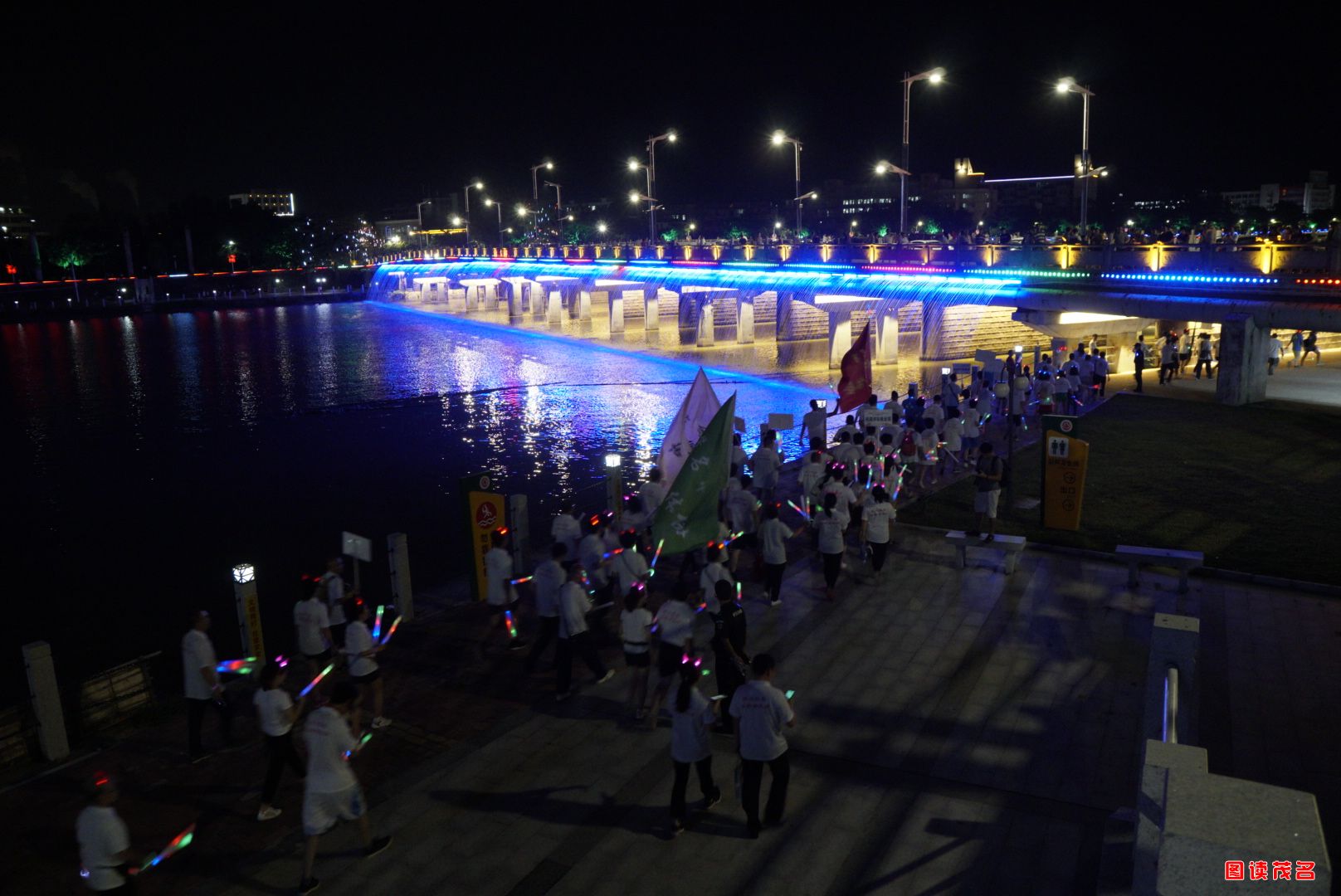 当天晚上,茂名市小东江同心岛如如玉带嵌城,沿路万家灯火,流光溢彩,绿意盎然。以“手拉手当好东道主心连心办好省运会”为主题的茂名市第二届魅力小东江荧光夜跑嘉年华活动,在茂名市委书记、市人大常委会主任李红军一声笛响后,参加荧光跑的800人身着荧光服、手执荧光棒陆续绕岛出发,浩浩荡荡沿小东江东面沿江路向北夜跑,沿途感受小东江沿岸的如诗风情。