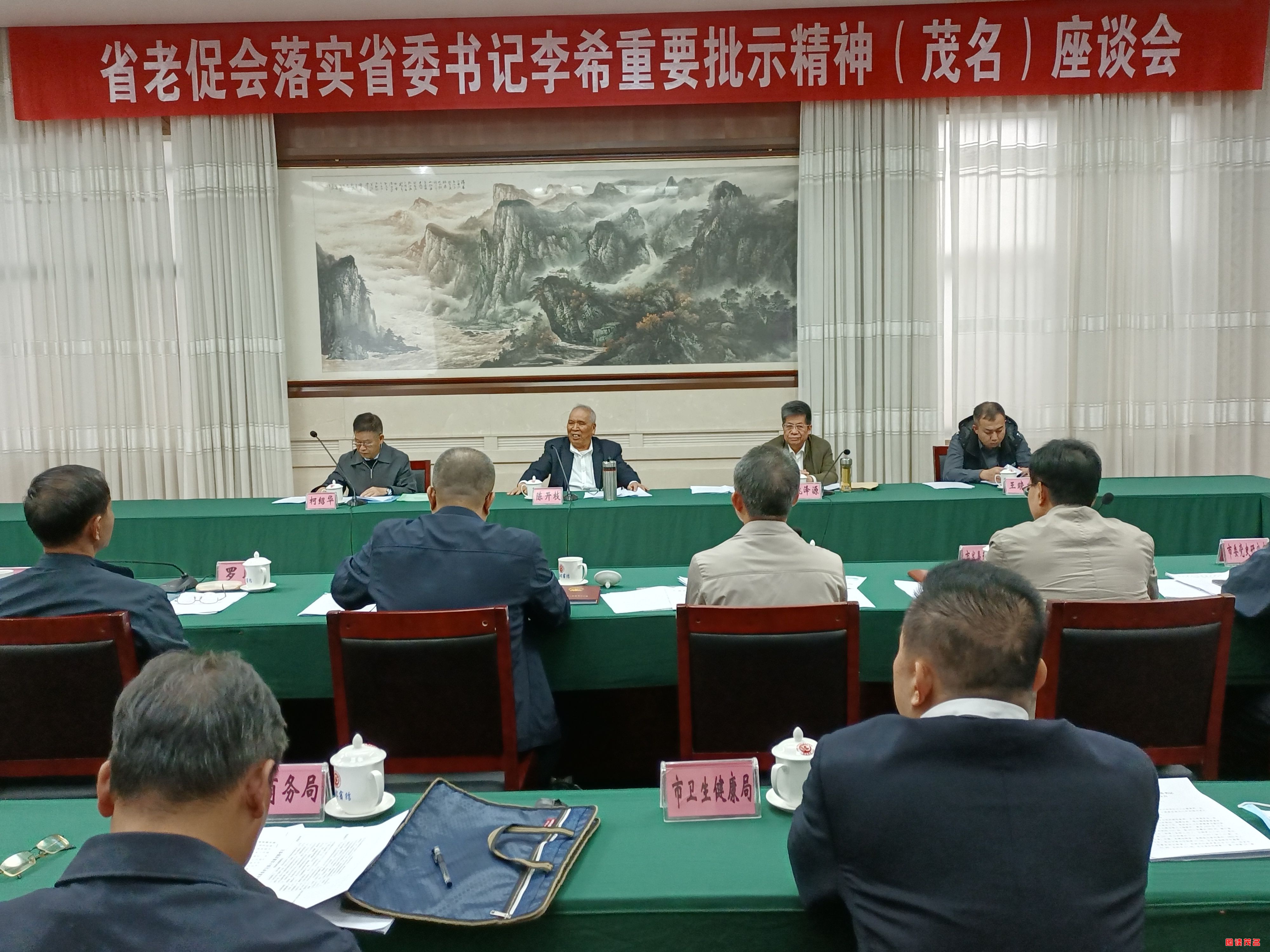 图读茂名网讯(林保)12月10日至12日,广东省老区建设促进会会长陈开枝带领调研组一行4人莅茂名考察落实省委书记李希对老区振兴发展的重要批示情况,并召开了座谈会。11日陈开枝一行深入老区化州市调研。茂名市委书记许志晖接见了调研组,市委常委、常务副市长杨安队出席座会并汇报了贯彻落实省委书记李希重要批示情况。参加座谈会的有茂名市委办、市政府办,市委党史研究室,市发展改革局、教育局、工信局、民政局、财政局、人力资源社会保障局、自然资源局、交通运输局、水利局、农业农村局、林业局、商务局、文广旅体局、卫生健康局、老促会等单位主要负责人共30多人。座谈会由陈开枝会长主持并作讲话提要求。茂名市老促会会长罗明出席座谈会并陪同调研组深入化州老区调研。