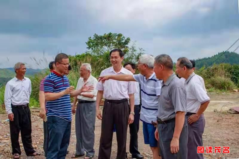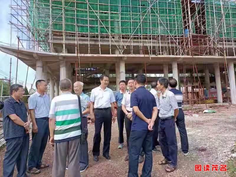 茂名市老促会会长罗明(左五)深入茂南区调研朱也赤烈士在建纪念馆