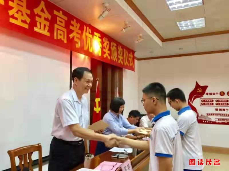 茂名市老促会会长罗明给高州市高考优秀学子颁发奖学金