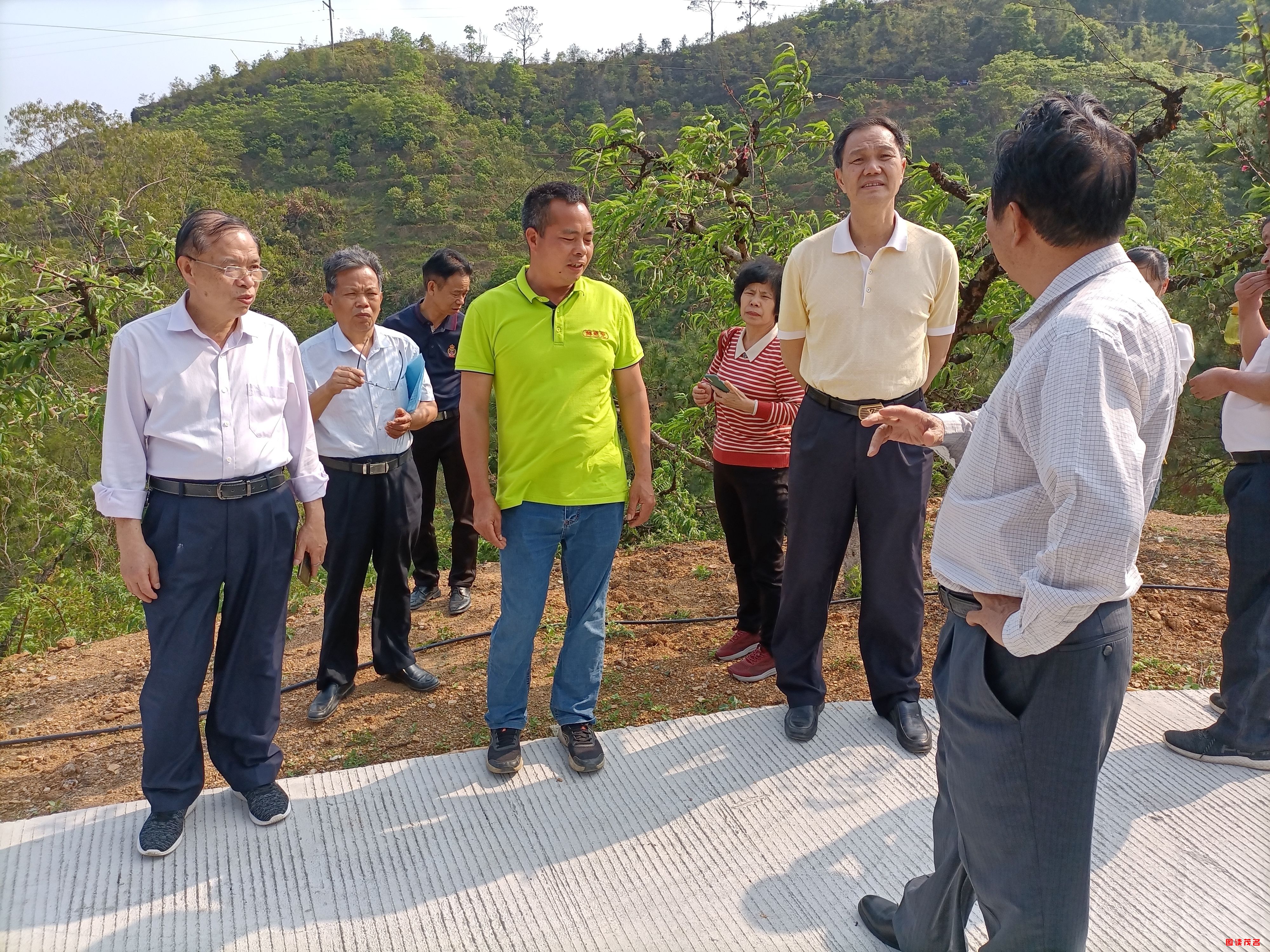 茂名市老促会会长罗明(右二)深入信宜老区调研指导红鹦桃种植