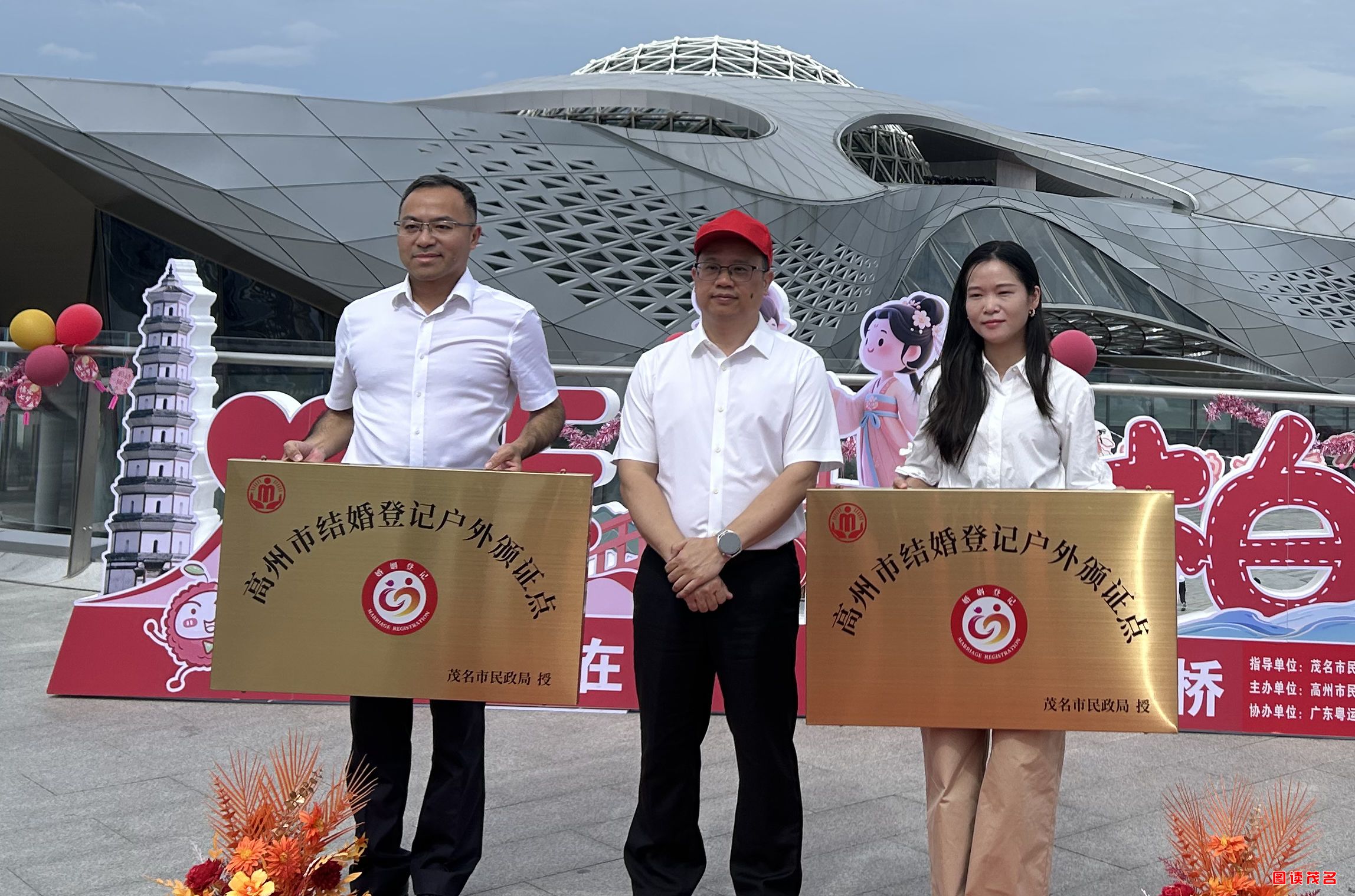 图读茂名网讯(梁天宇)8月29日,茂名第九个及第十个特色结婚登记户外颁证点授牌暨“爱在七夕,相会柏桥”结婚登记集体颁证仪式在柏桥服务区隆重举行。