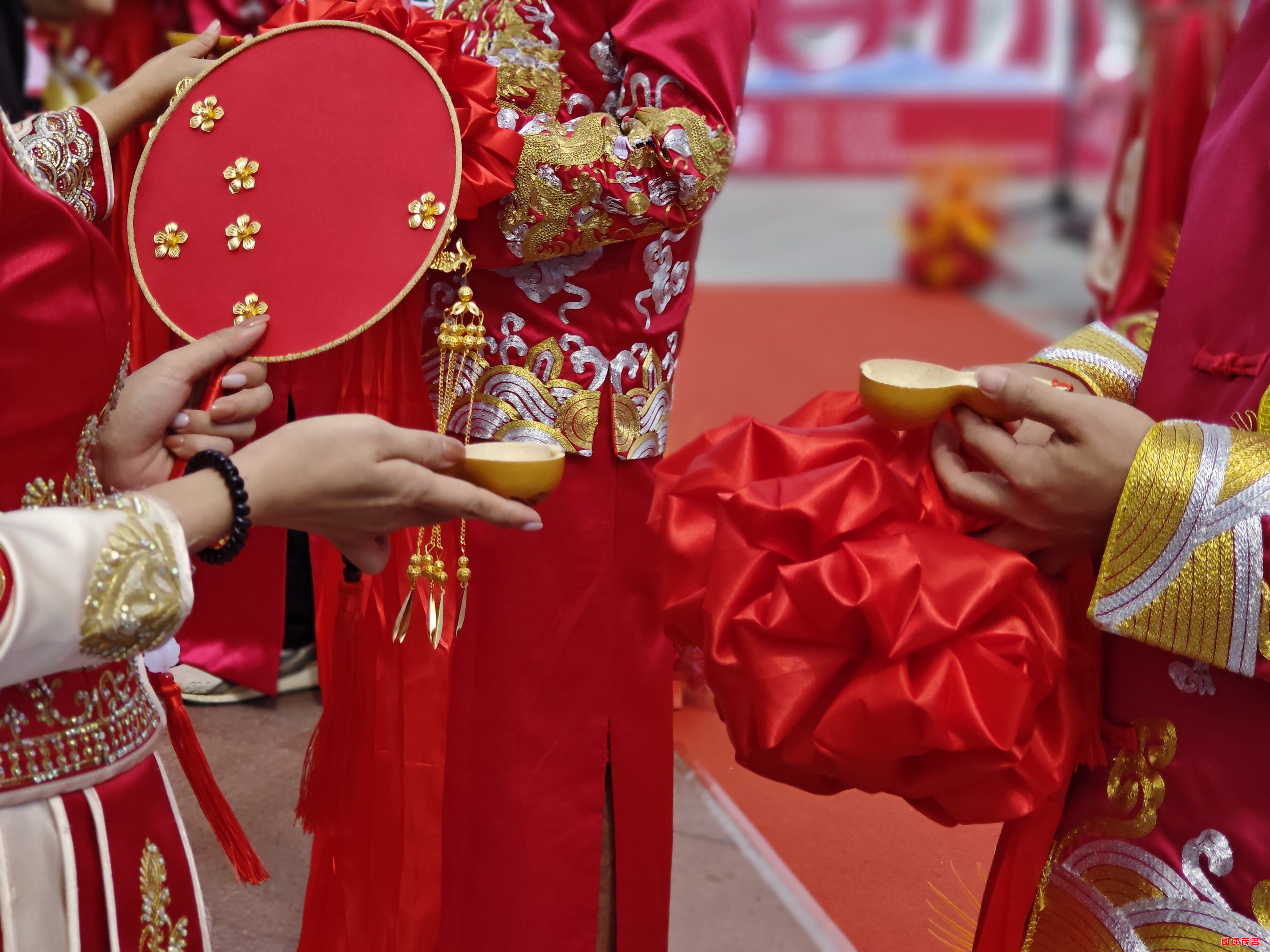 活动现场,10对新人身着中式礼服缓缓踏上红毯,新郎新娘共执红绸,同牵红绣球,依次进行描眉、合卺共饮、结发同心、宣读婚书等环节共结连理,尽显中国传统婚礼的庄重与神圣,也在传统礼仪中寄托对婚姻的美好期许。