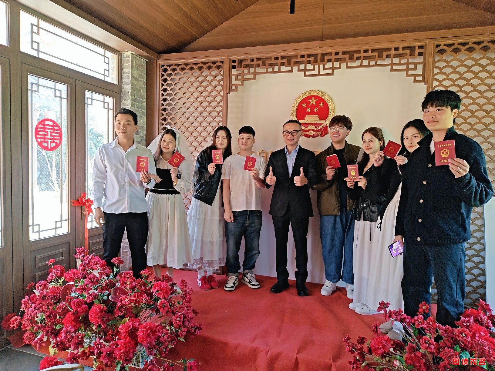 岭南凤凰园景区内,一场庄重典雅的中式集体颁证仪式徐徐展开。却扇礼、合卺之礼、结发之礼等传统礼仪依次上演,新人身着华服,步履款款,在古意盎然的景致中感悟婚姻的神圣与相守之道。集体宣誓、领证合影等环节有序推进,推动中华优秀传统文化与文明婚俗新风深度融合,为新人留下兼具传承价值与浪漫气息的难忘记忆,让千年礼韵浸润幸福初心。