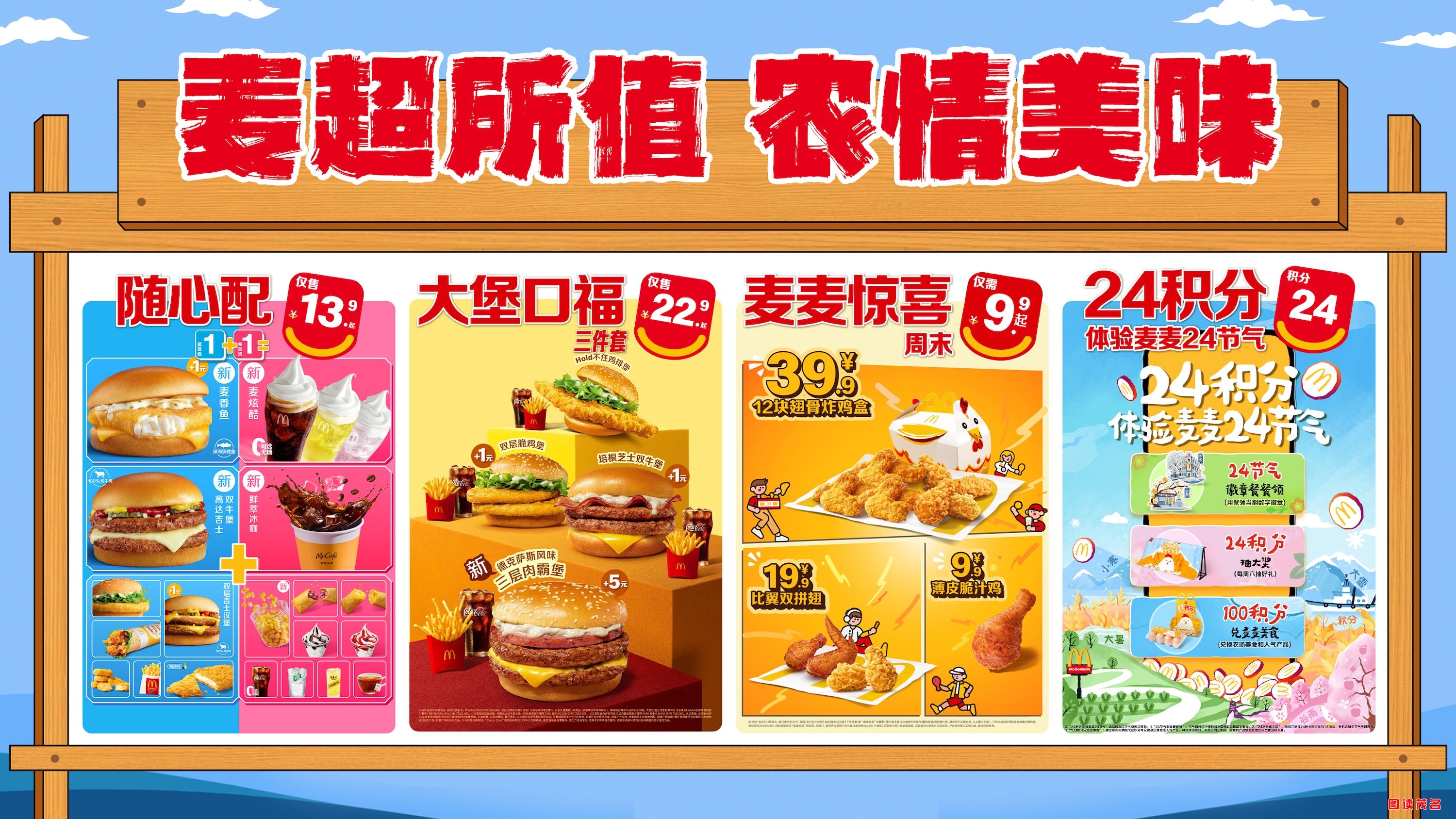 “麦超所值”,不止是超值的产品和体验,更是日复一日对品质的坚守与传承。麦当劳希望邀请消费者感受超值美味背后的“农情”温度,在每一口美味中体会“农场好食材”、“农人超用心”、“农业深底蕴”。 此次,麦当劳特别邀请不同地区的农民画艺术家进行创作,讲述更多彩、更丰富的“农情”故事。2026年1月起,由白羽好鸡、百分好牛、深海好鱼呈现的随心配、大堡口福超值美味,将换上“农情美味”限定农民画主题包装。