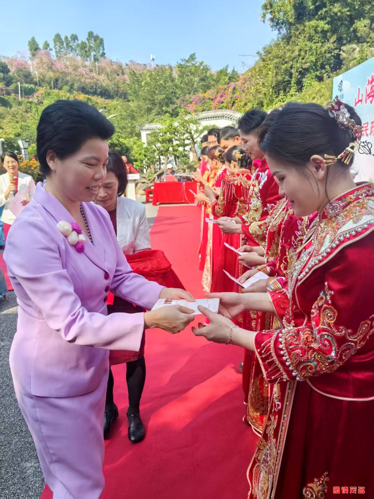 高州市民政局相关负责人表示:“元旦寓意‘一心一意、一生一世’,举办集体颁证活动,是我局深化婚俗改革的重要举措。我们将颁证仪式从政务大厅延伸至景区,丰富婚姻登记的仪式感与文化内涵,引导群众树立健康的婚恋观、家庭观,推动婚事简办、新办,切实践行‘民政为民、民政爱民’工作宗旨。”