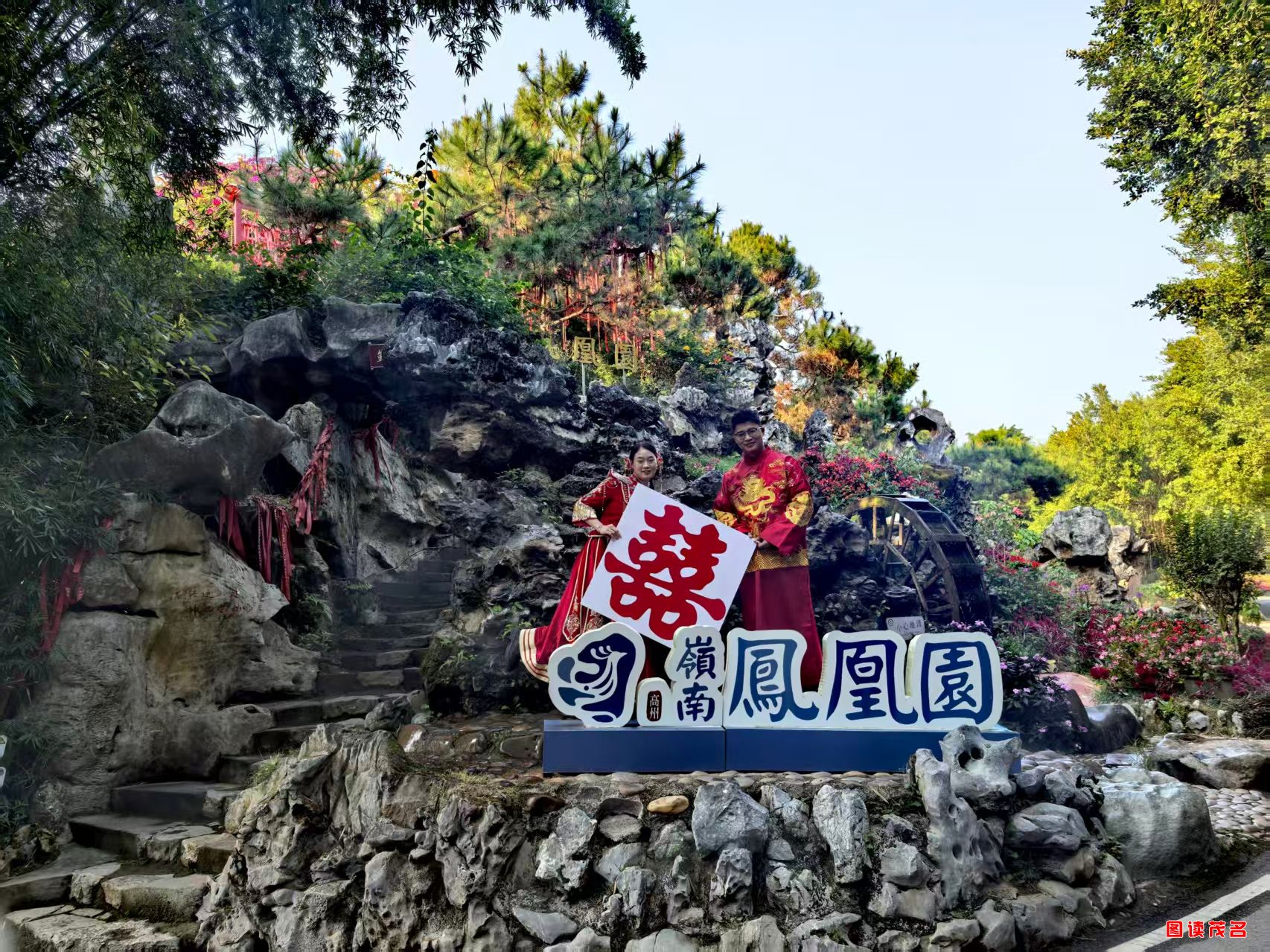 今日的岭南凤凰园,喜庆与庄重交融。这座由杨幸注先生(“八叔”)倾心力打造的园林秘境,百吨太湖奇石静立其间,或似凤舞九天、或如鸳鸯相依,历经岁月沉淀,守护着新人情谊;“叠山、理水、筑景、植绿”的雅致景致,与元旦氛围相融,浸润着浪漫温情。