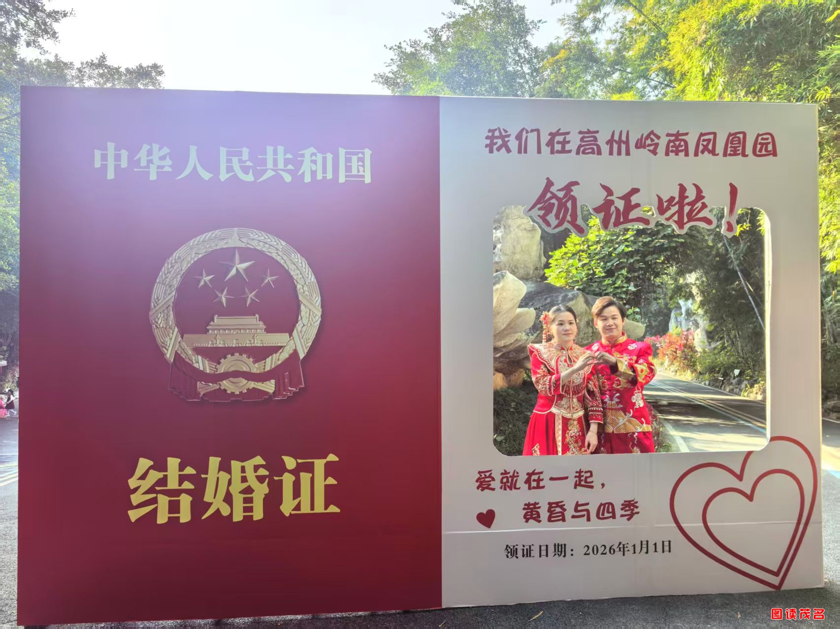 图读茂名网讯(曾王略 赵迅)新元启爱序,高州定今生!2026年1月1日元旦,由茂名市民政局指导、高州市民政局主办的“山海共鉴 爱启新元”集体颁证仪式在岭南凤凰园圆满举办。10对新人执手赴约,以奇石为盟、山水为凭,在园林雅韵中见证婚姻神圣、践行文明婚俗,高州市民政局以贴心服务与庄重仪式,为新人开启幸福新程。